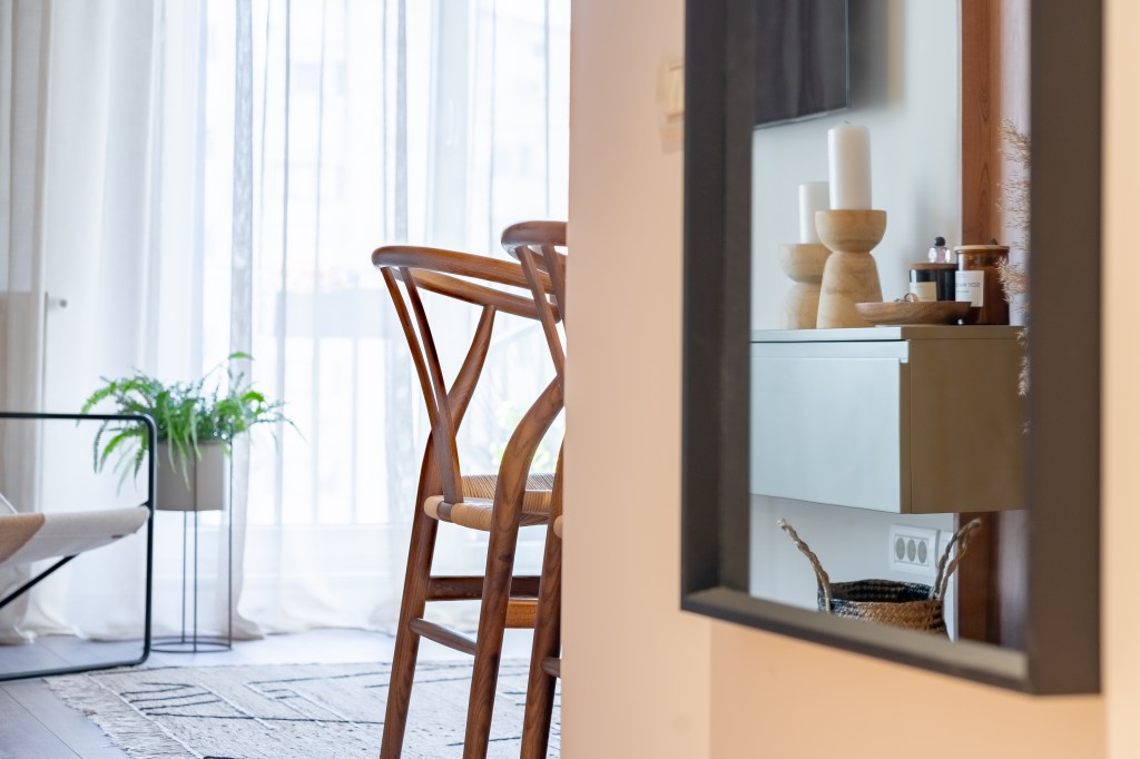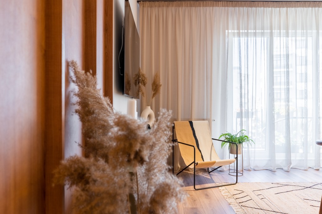 „Încă de la început, atmosfera amenajării s-a dorit a fi una cu nuanțe neutre, pe fondul căreia să adăugăm pete de culoare. În felul acesta, bejul și griul formează fundalul locuinței, peste care se așaază petele de verde, crem și nuanțe de lemn”, povestește Valentin.