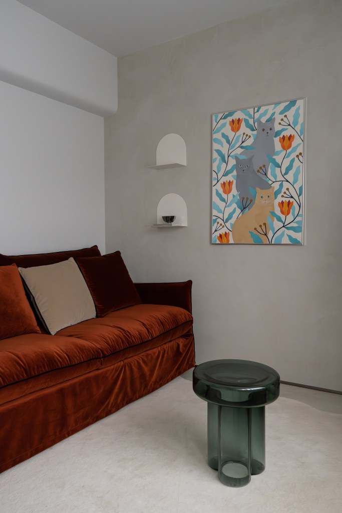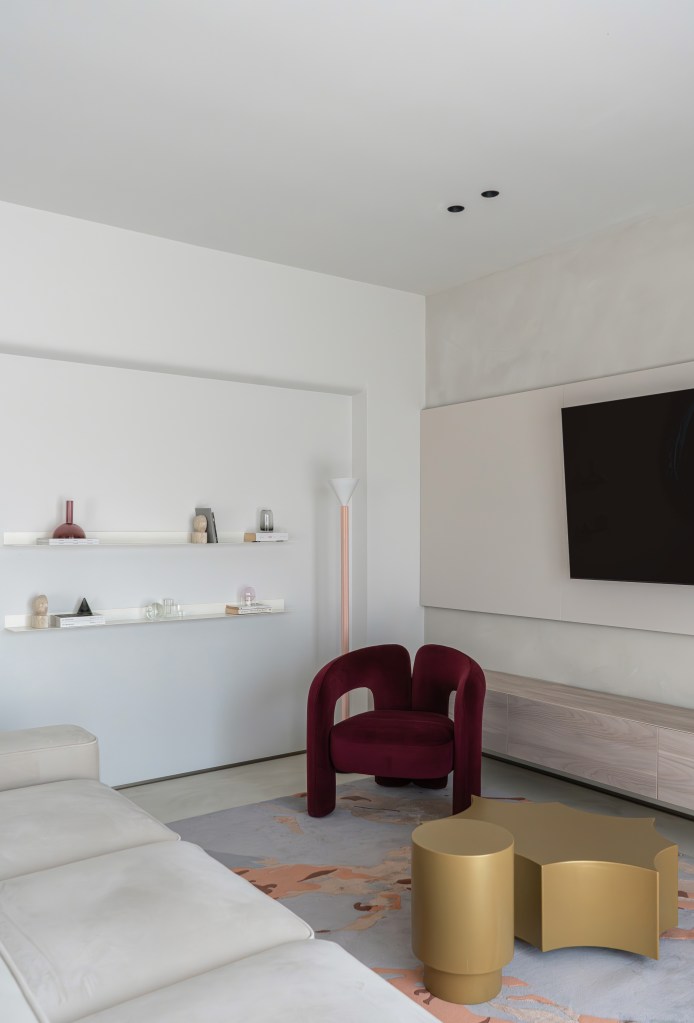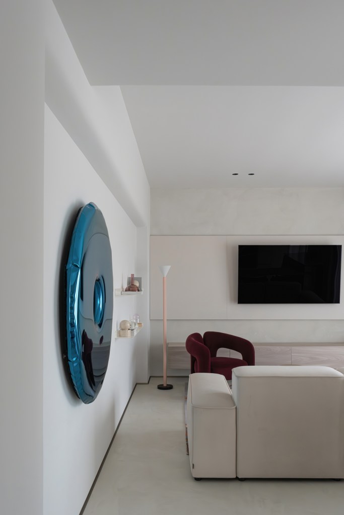 „Când am vizitat locuința beneficiarilor, am descoperit multe elemente vibrante, tablouri colorate, piese vestimentare îndrăznețe, indicii subtile ale unei personalități mult mai jucăușe și mai expresive decât imaginea sobră pe care o credeau reprezentativă. Le-am propus o direcție de amenajare în care ei să se regăsească cu adevărat și ne-am bucurat de toată susținerea lor. Am păstrat ideea inițială, aceea a unui interior monocromatic minimalist, dar am integrat și accente de culoare. Astfel, clienții au ajuns să își descopere o latură neașteptat de expresivă, în care culoarea și detaliile artistice joacă un rol esențial”, povestește arhitecta Alexandra Stamate.