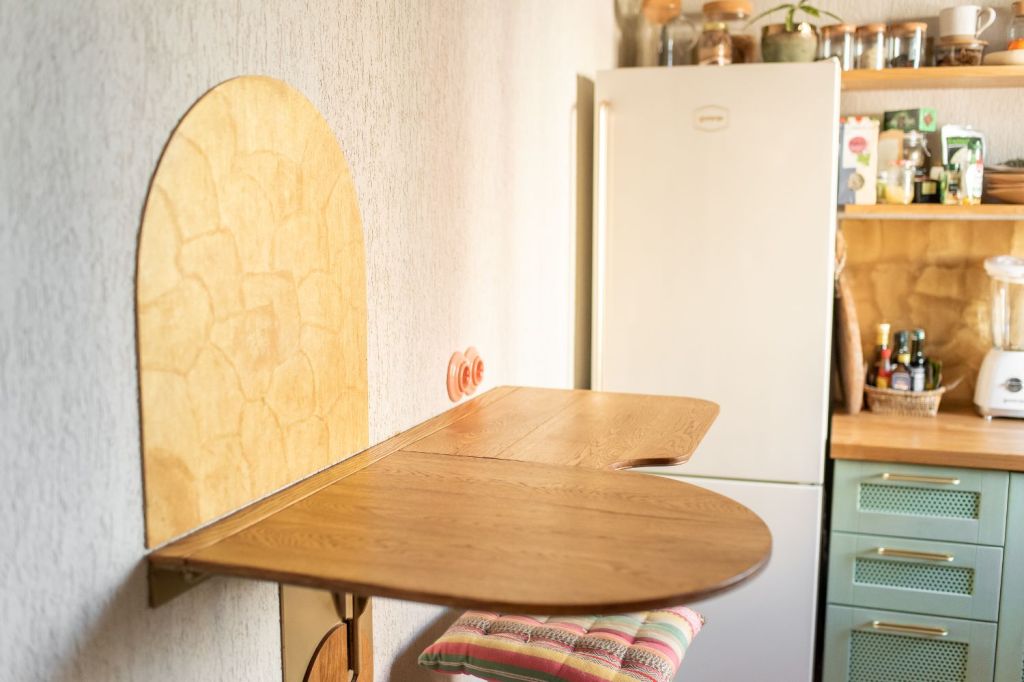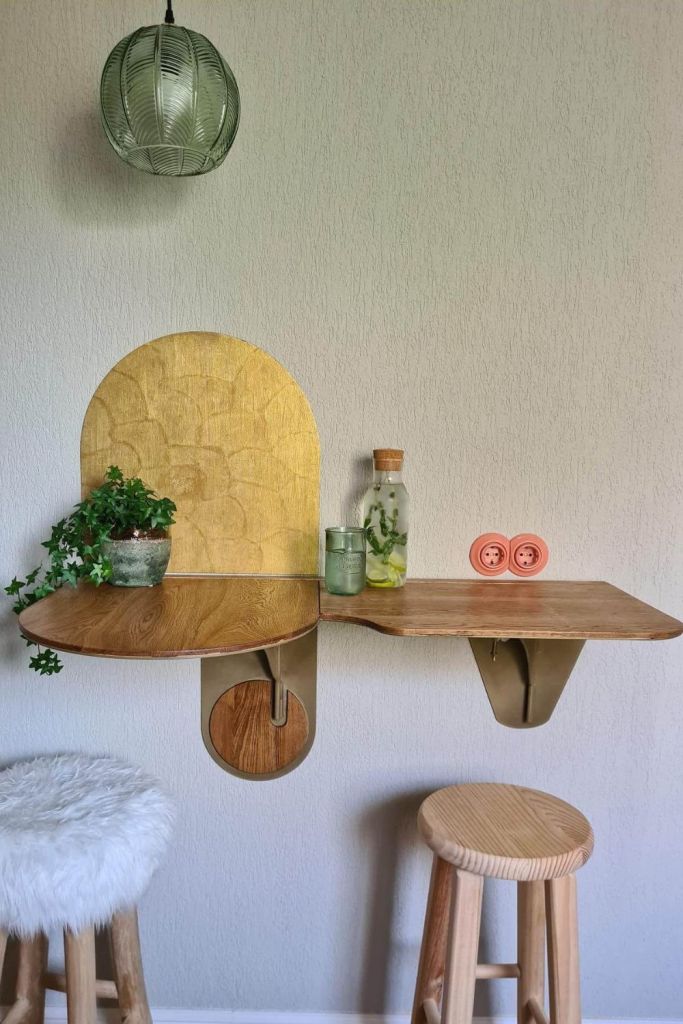Măsuța tip bar este rabatabilă și realizată pe comandă.
