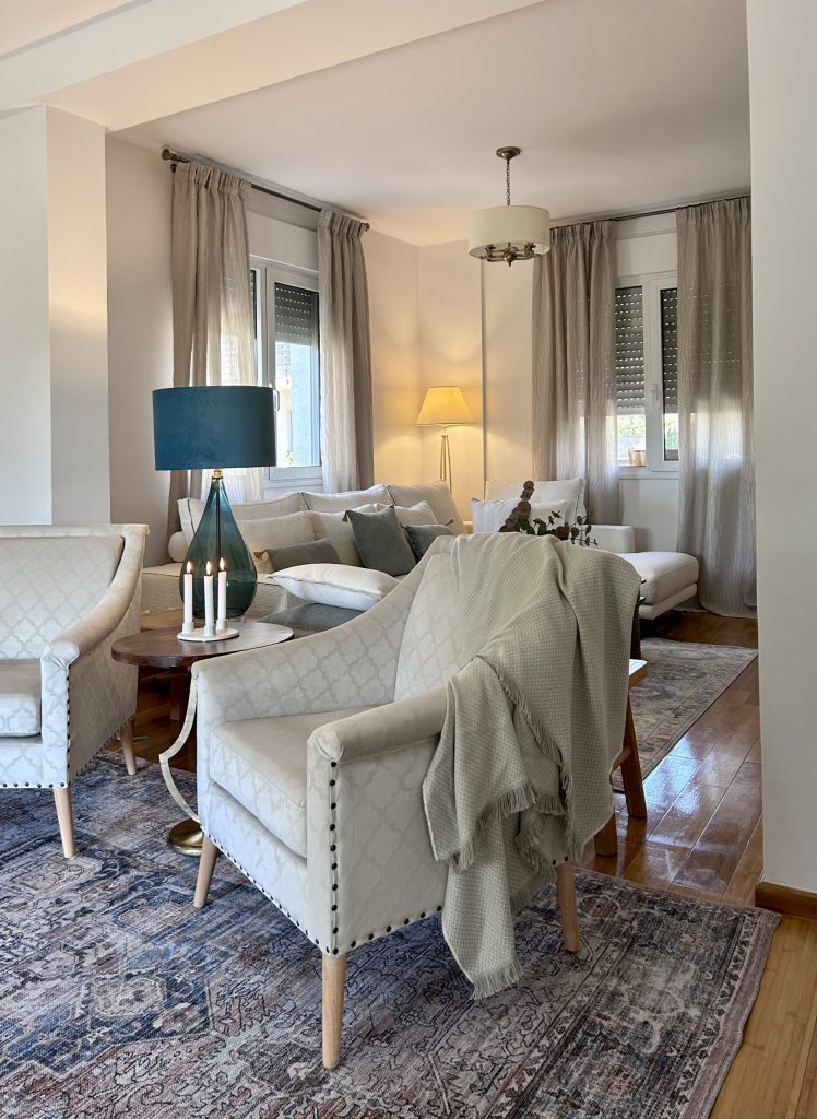 Proiectul a început imediat după pandemie. Beneficiara, o juristă iubitoare de frumos și de obiecte purtătoare de povești, a contactat-o pe Corina în speranța că o va ajuta să reîmprospăteze interiorul casei sale din Corbeanca. Pornise cu ideea unui șantier în care doar să cosmetizeze anumite spații, dar s-a ajuns la o renovare completă care a însemnat o investiție de aproape 55.000 euro.