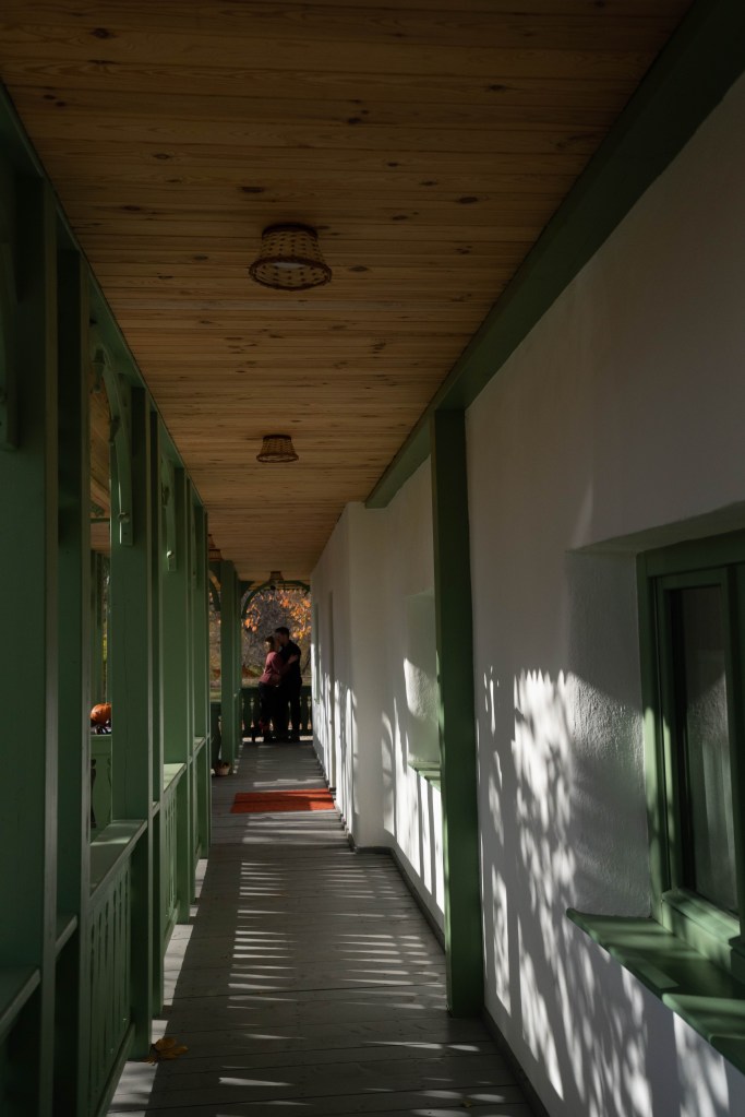 Cerdacul care vine pe două laturi ale casei este o reconstituire a arhitecturii tradiționale din zonă, iar superbul model de arcade cu fuse a fost reprodus după cel al unei case din Bălțătești, pe lângă care Lavinia obișnuia să treacă des cu mașina. Au urmat finisajele din lut, așa cum era odată în casa bunicii Laviniei, iar cea mai bună rețetă de tencuială cu lut au descoperit-o chiar la fața locului.