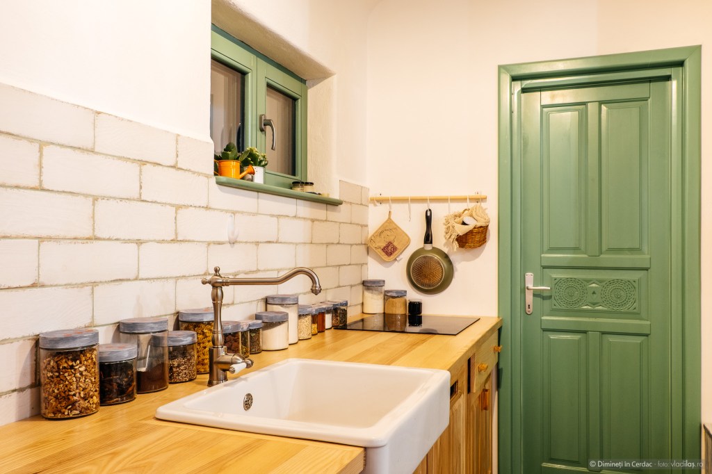 „Numele «Dimineți în Cerdac» ni s-a arătat prin septembrie – noiembrie anul trecut, când aproape terminasem cu șantierul. Pentru noi, sugerează un nou început, iar pentru oaspeții noștri am vrea să fie un indiciu către perfecțiunea momentelor care pot fi petrecute aici, dacă se conectează la frumusețea și căldura locului”, spune Lavinia, care și-a listat casa tradițional-inteligentă pe Airbnb.