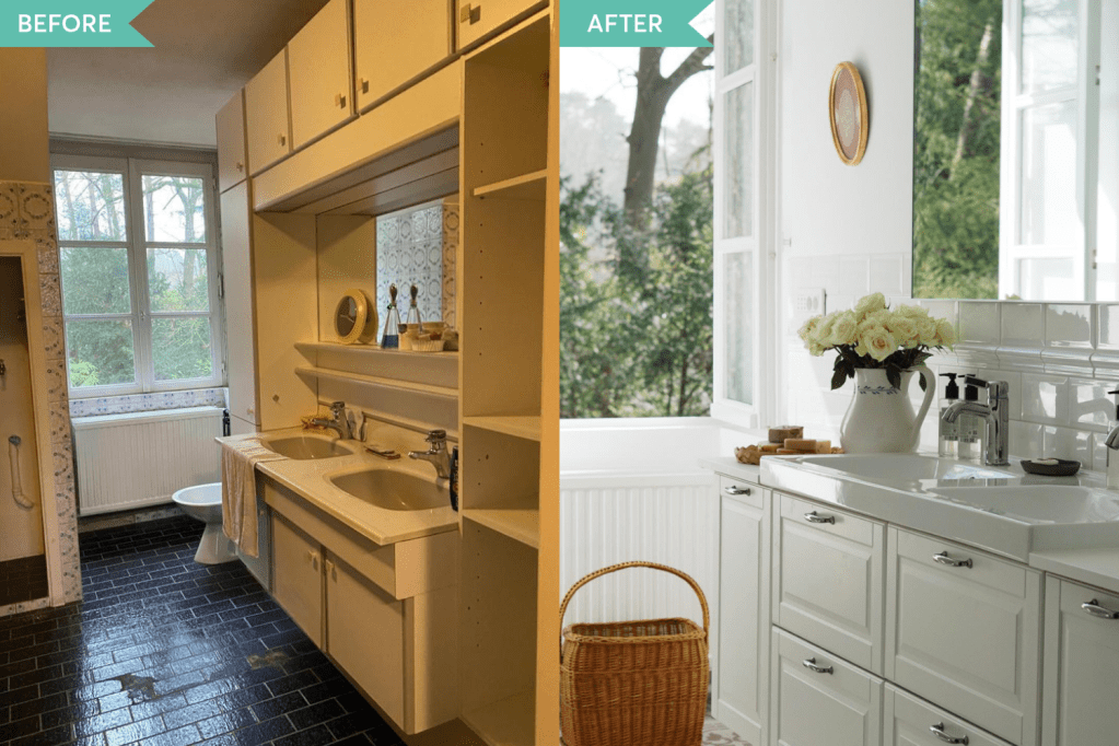 Mobilierul vechi din baie a fost schimbat cu unul modern și cât mai simplist.