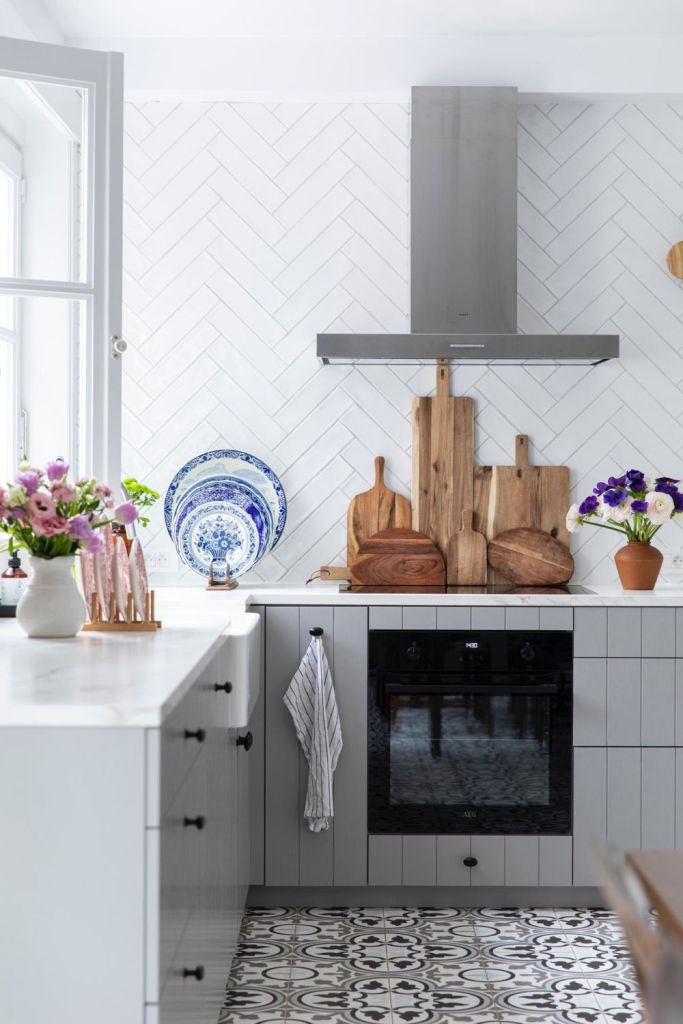 Gresia din bucătărie este de la Brukom Tegel, iar faianța de la Impermo. Photo credit: Karen Vandenberghe – Dovy Keukens