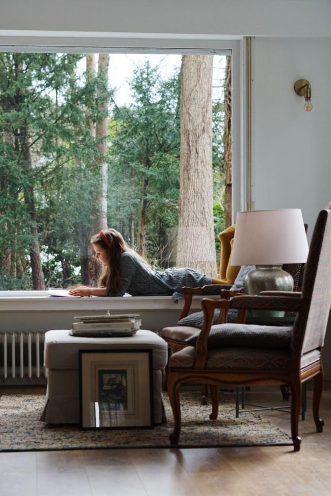 Geamul mare din living este spațiul potrivit pentru lectură și admirat natura.