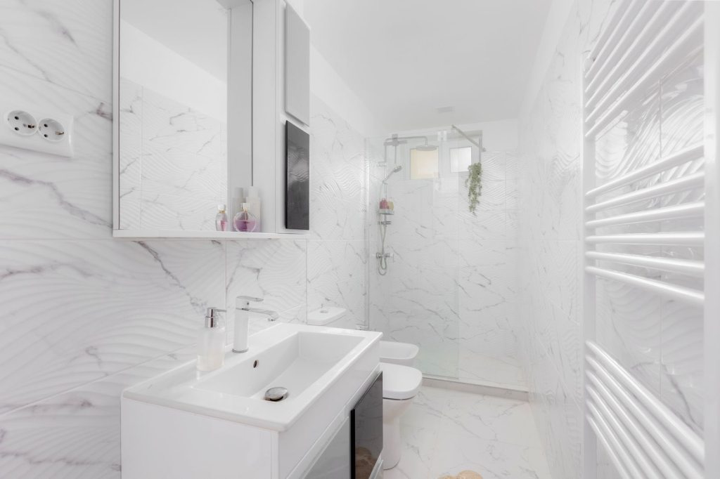 Alexandra și soțul ei au început procesul de decorare și mobilare în mai 2025 și au încheiat două luni mai târziu. Bazele (podelele, pereții albi și băile erau finisate) erau deja puse. „Partea noastră de transformare a însemnat să dăm viață spațiului: am zugrăvit pereții, am vopsit tocul ușilor și o parte din mobilier, am adăugat un perete fals în dormitor, o ușă decorativă din riflaj, apoi am montat mobilierul, perdelele, televizorul și, firește, am adus acel strop final de personalitate prin decor”, explică ea.
