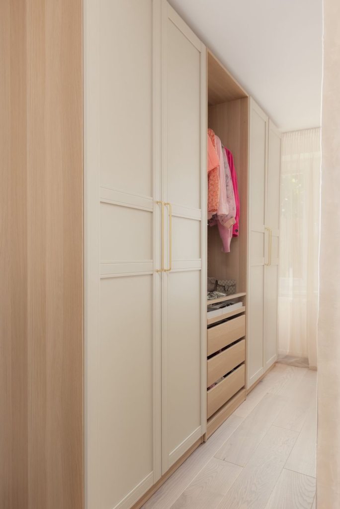 Încă de la achiziționarea casei, proprietara a explorat majoritatea site-urilor de mobilă care livrează în România, cu dorința de a găsi elementele care să-i aducă viziunea la viață, dar și cu cea de a se încadra într-un buget de 50.000 de lei pentru întreaga renovare. „Magazinele de unde am ales produsele sunt diverse, de la IKEA, Zara Home și H&M Home, până la Mobexpert și XXXLutz”, adaugă ea. Cel mai costisitor element a fost dressing-ul IKEA PAX, aproximativ 4300 de lei, dar spune că a meritat din plin.
