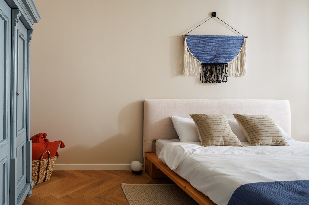 Pentru că este un apartament de închiriat, Adela nu a pus prea mult accent pe spațiile de depozitare. Astfel, încăperile respiră și lasă ochiul să se concentreze pe frumos: mobilier mic, obiecte decorative, texturi.