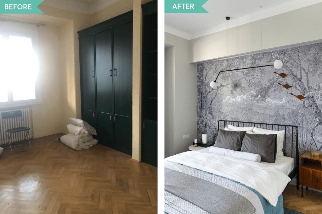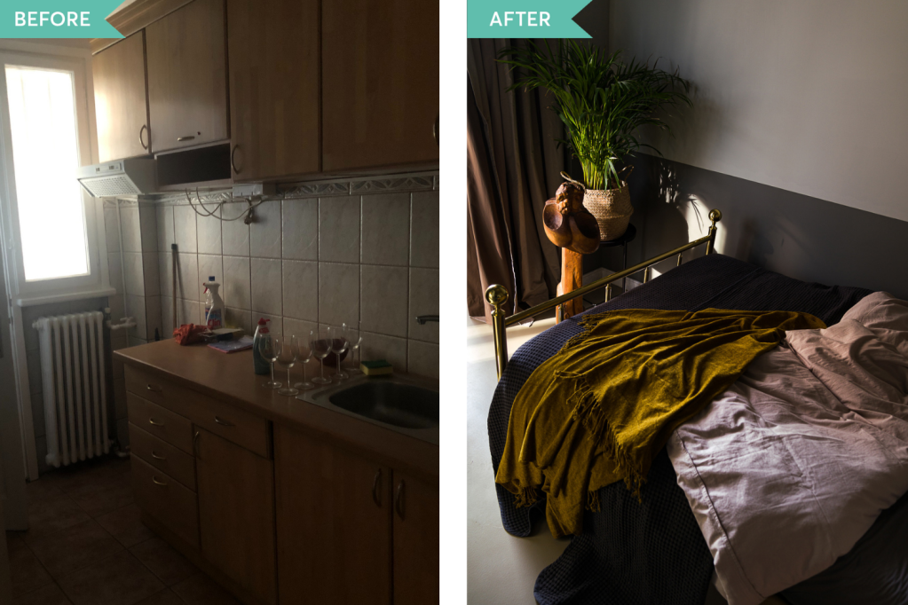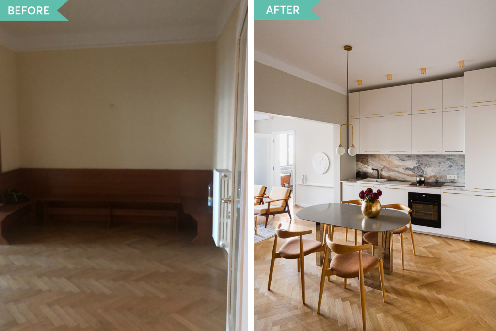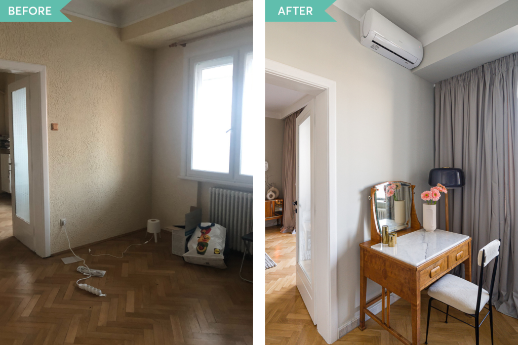 Au mutat bucătăria în zona de zi, iar în locul acesteia se află acum un mic dormitor. O renovare de apartament ce pare scoasă din paginile de reviste, realizată cu un buget generos, în care piesele de design care ajung și la câteva mii de euro se îmbină armonios cu mobilierul de la IKEA sau Jysk.
