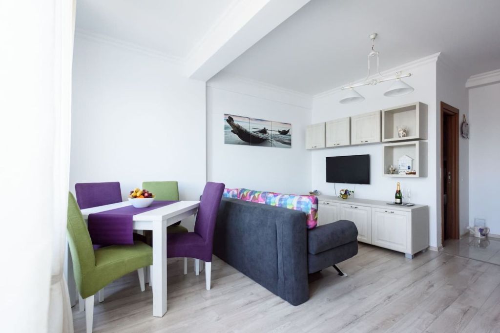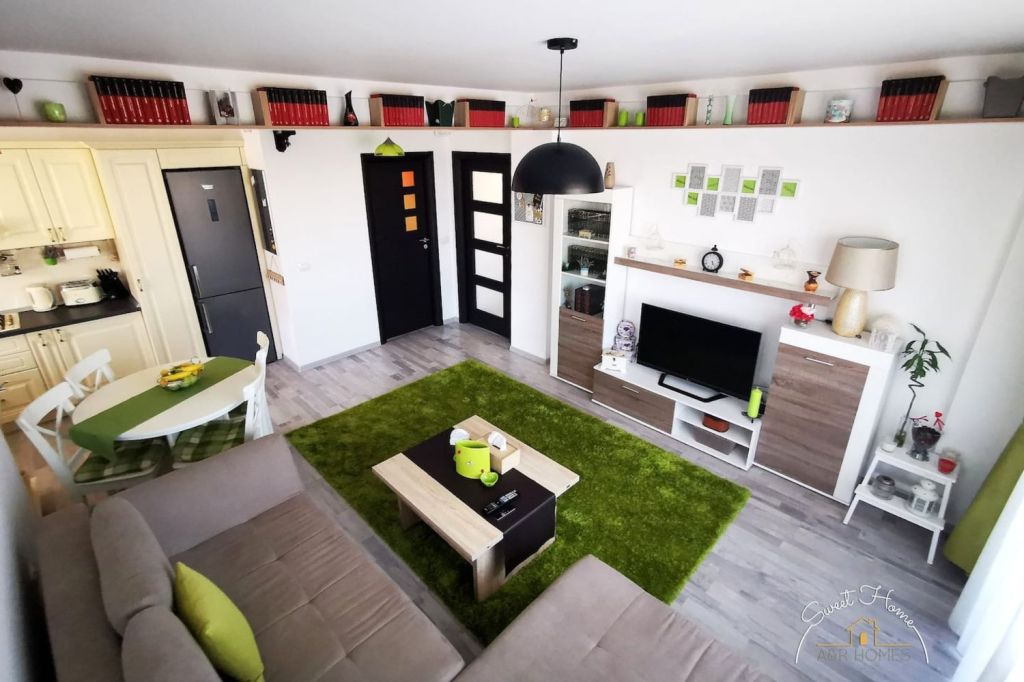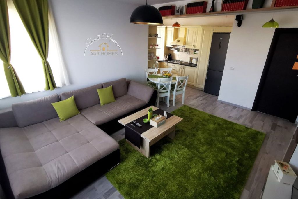 Al doilea apartament din Brașov are și două dormitoare, fiecare decorat într-o culoare, și o chicinetă echipată, și un living confortabil în care să ciocnești șampania. E situat într-un bloc nou, foarte aproape de Coresi Shopping Center, cel mai mare mall din oraș, într-o zonă liniștită. Bucătăria și baia sunt complet utilate, nu lipsește indispensabilul Wi-Fi și televizorul, iar dacă ai vreun pet pe care nu vrei să-l lași în urmă, vești bune! Îl poți aduce și pe el.