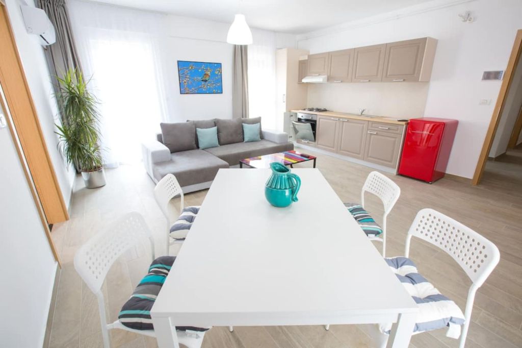 Iubitorii de mare poate că și-ar dori să audă valurile și în noaptea dintre ani. Dacă se grăbesc, poate mai găsesc apartamente de închiriat la malul mării, căci oferta nu este prea generoasă, pe timp de iarnă. Cel pe care l-am găsit, nu foarte ușor, e la două minute de mers pe jos de o plajă liniștită din nordul orașului. Primește opt oaspeți și are o zonă de dining potrivită ocaziei, o baie cu hidromasaj și obișnuita bucătărie echipată complet. Tariful pentru o noapte este unul special.
