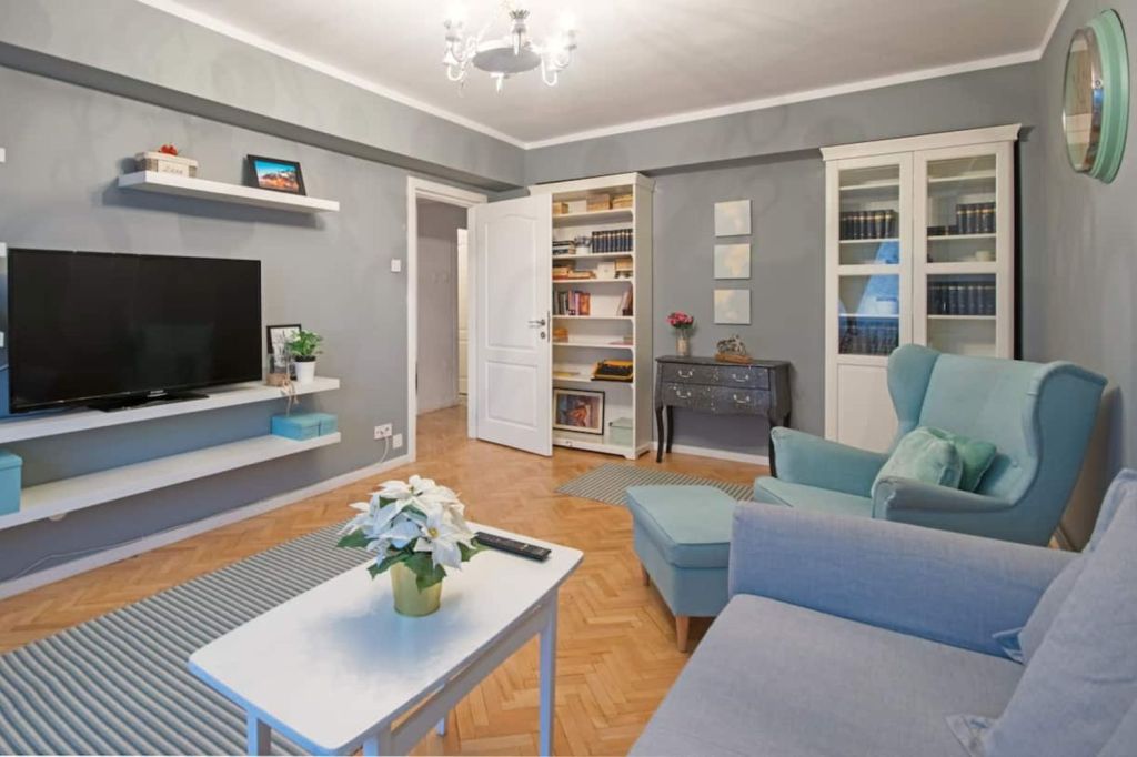 Ai putea închiria apartamentul ăsta doar ca să te bucuri de designul lui deosebit: un apartament dintr-o clădire interbelică, amenajat într-un stil elegant, ba chiar luxos, pe alocuri. Are două balcoane și a fost renovat recent, dar a păstrat linia elegantă dată de elemente specifice precum tavanul înalt și ferestrele generoase. Iese în evidență camera în care tronează o cadă de baie freestanding, cu aspect retro, în care te poți relaxa alături de un pahar de șampanie, așteptând Anul Nou.