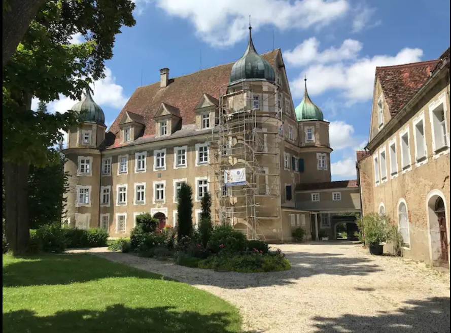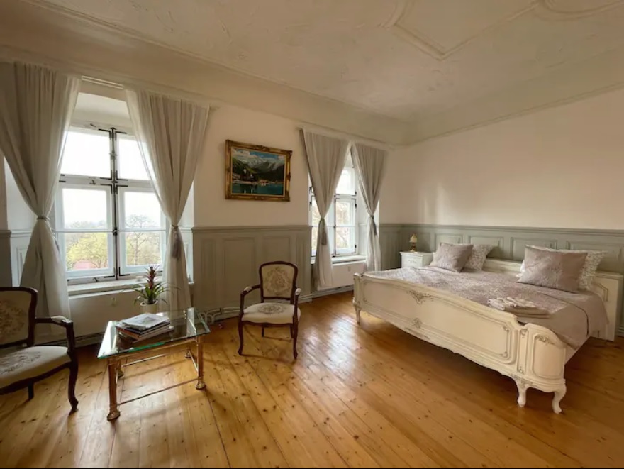 Situat în apropiere de orașul Ulm, castelul Hürbel face parte din așa numitul Traseu Baroc și este situat în regiunea Oberschwaben, una înțesată de mănăstiri și palate. Acest apartament fermecător, cu un dormitor, o bucătărie privată și baie, are o vedere frumoasă la grădină și la biserică, acces la balcon și 30.000 metri pătrați de spațiu verde (partajat cu alți rezidenți ai palatului). Castelul cu arhitectură barocă este complet modernizat și reparat în interior, cu camere cu ferestre generoase, tavan înalt și mobilă clasică, dar în ceea ce privește exteriorul proprietarii specifică că fac tot posibilul pentru a aduce acest frumos edificiu înapoi la splendoarea sa.
