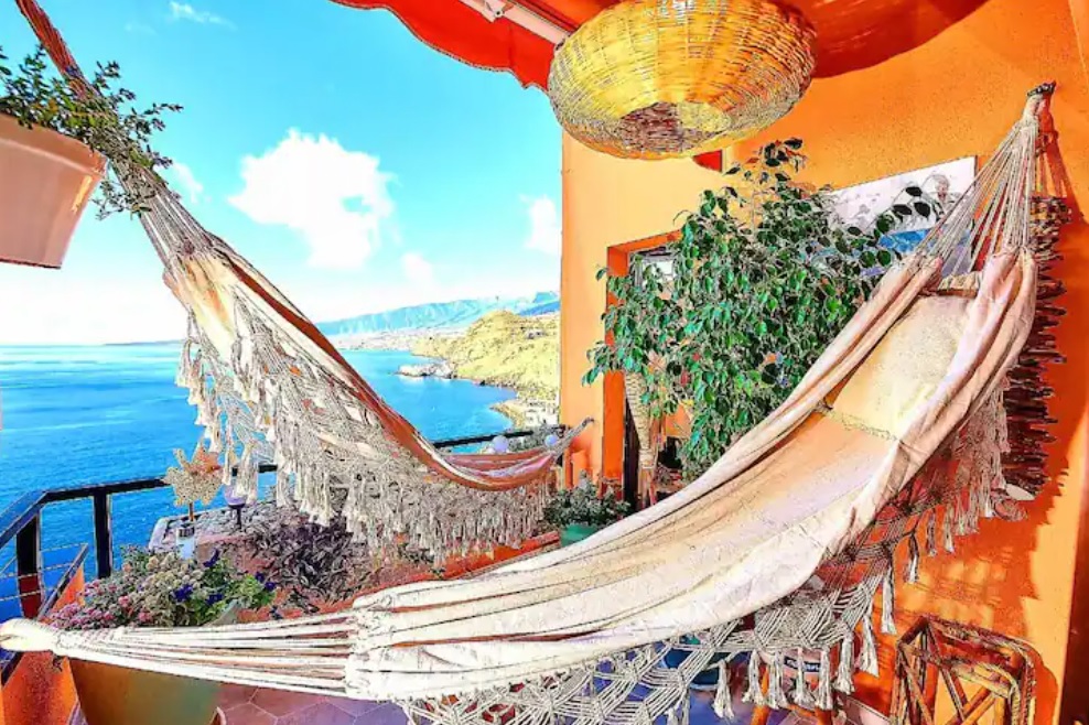 Dacă vrei să experimentezi o cazare verde, o poți încerca pe cea din zona muntoasă a insulei Tenerife, cu vedere la Valea Orotavei, un cadru unic cu vederi panoramice spectaculoase. Cabana este alimentată cu energie solară și se află în apropierea Parcului Național Teide, dar și a oceanului. Locuința are bucătărie completă, baie privată cu chiuvetă, duș și toaletă complet funcționale și, cel mai important, o saună sub formă de butoi în curtea proprietății. Totul este idilic, însă locuința se află în mijlocul naturii, așa c-ar trebui să te aștepți la o experiență semi izolată.