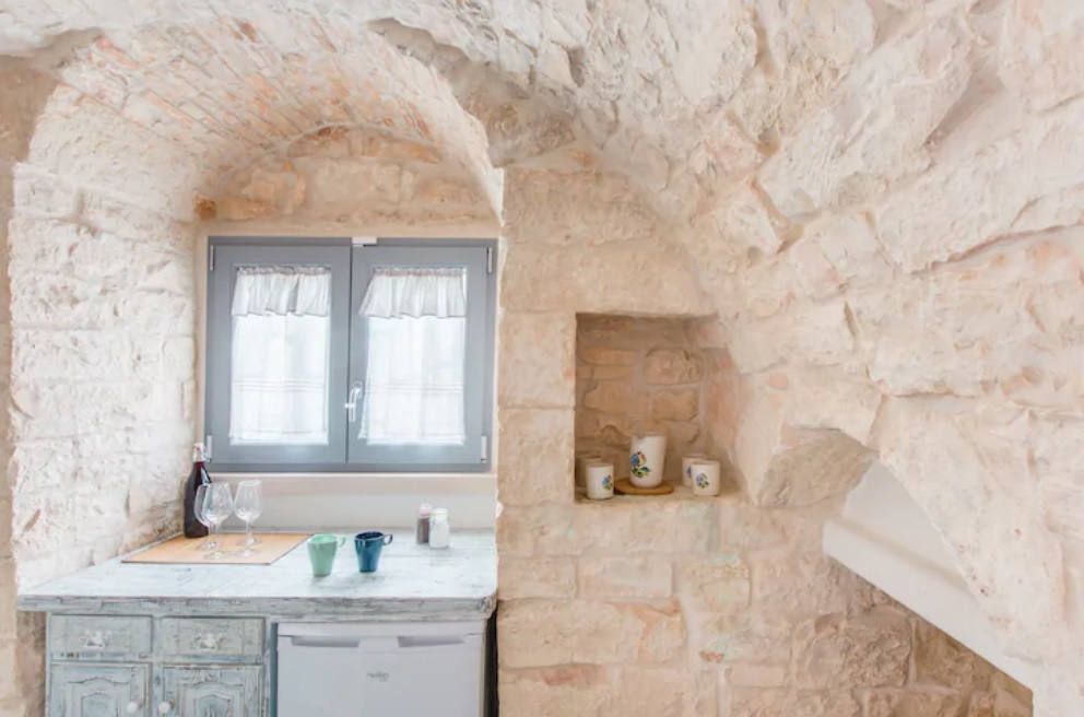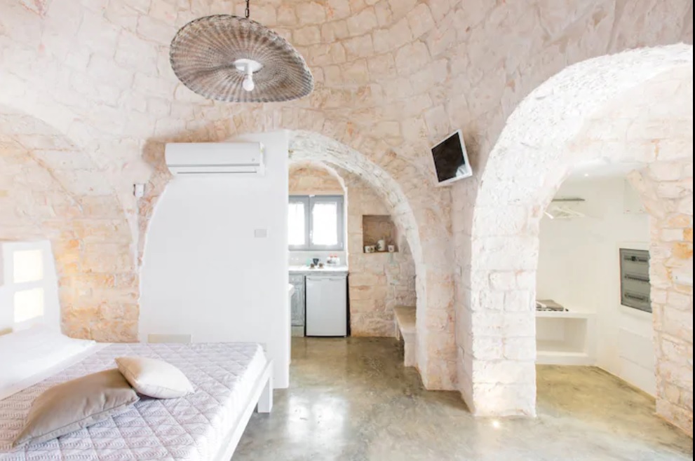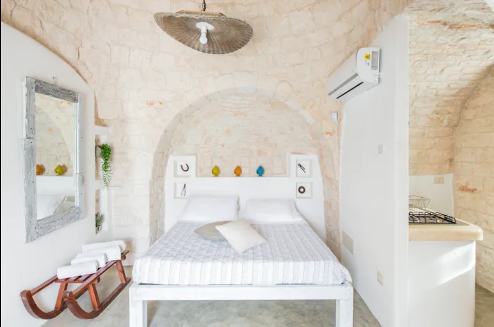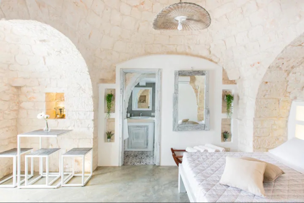 Aflată la 50 minute de mers cu mașina de aeroportul din Salento, aceasta este o altă cazare care te îndeamnă să experimentezi magia șederii într-un trullo autentic din Puglia (Apulia). Datând din anul 1714, dar echipată pentru a garanta cel mai modern confort, această casă din piatră îmbie cu o atmosferă bogată în istorie, intimă, dar îngrijită în fiecare detaliu.