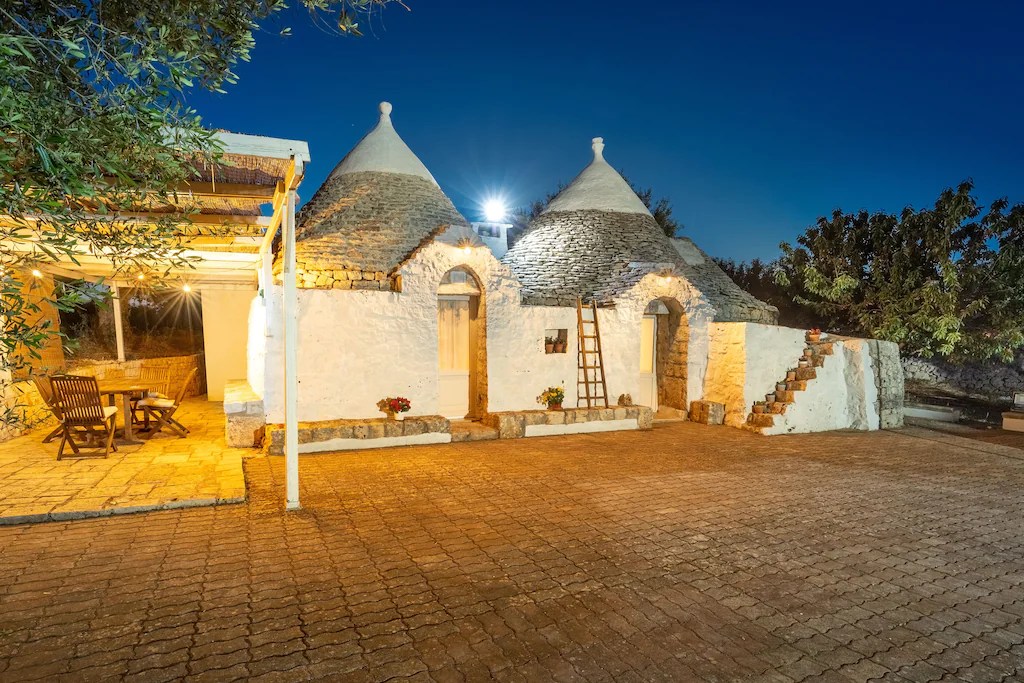 Acești trulli antici dintr-o localitate situată la 11 kilometri de Alberobello sunt compuși din două conuri din calcar, un alcov și o baie elegantă. Într-un astfel de trullo vei găsi un dormitor cu un pat matrimonial, o canapea extensibilă dublă, o bucătărie utilată și un foișor cu grătar din piatră. Autenticul modern este conferit de acea piscină săpată în piatră, cu șezlonguri, ideală pentru a petrece seri minunate la lumina lunii.