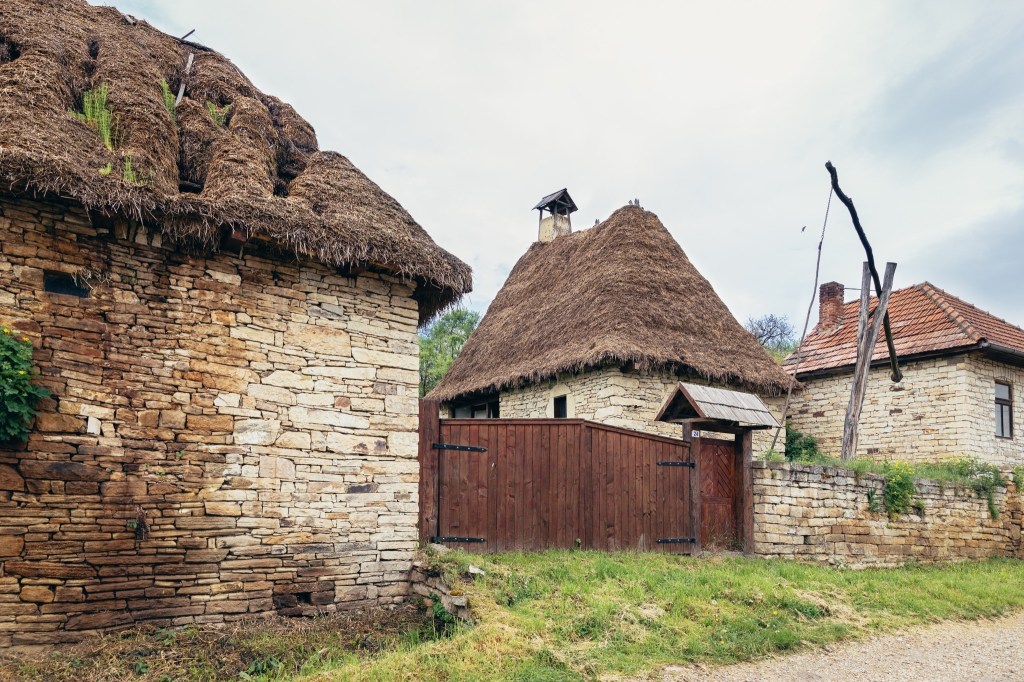 Cele puțin peste 100 case răsfirate, construite din lemn și pământ, cu acoperișuri de paie și vopsite-n albastru, fac special acest loc încremenit în timp.