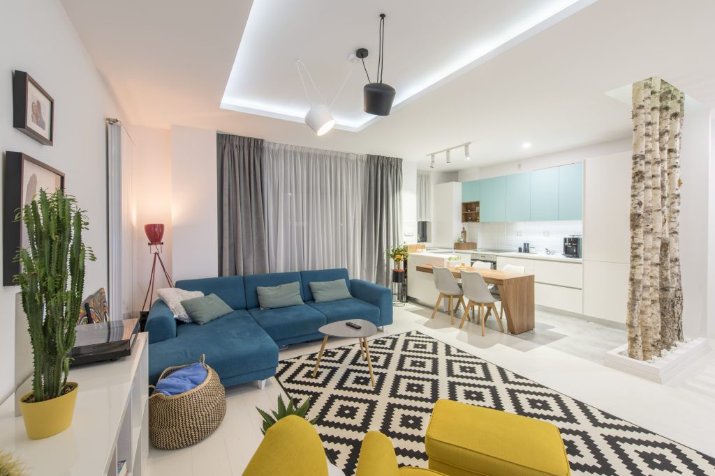 Infuzie de culori puternice și texturi catifelate într-un apartament de 57 de metri pătrați.