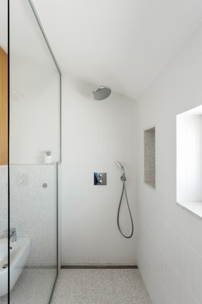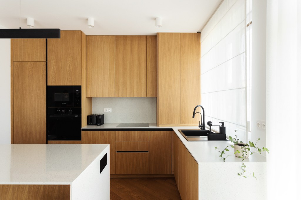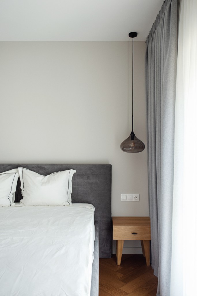 „Singura cerință a beneficiarilor în ceea ce privește estetica spațiului a fost să integrăm terrazzo în amenajare. De aici a și pornit întreg conceptul de cromatică și materiale”, povestește Andreea Iancu. „Cei doi și-au dorit, de asemenea, culori neutre, luminoase, să folosim lemn. Eu zic că am reușit să obținem o amenajare aerisită și modernă, dar totuși «timeless». Ce am am apreciat cel mai mult la clienții mei este că și-au dat tot interesul să implementăm proiectul cât mai aproape de propunerea de design”.