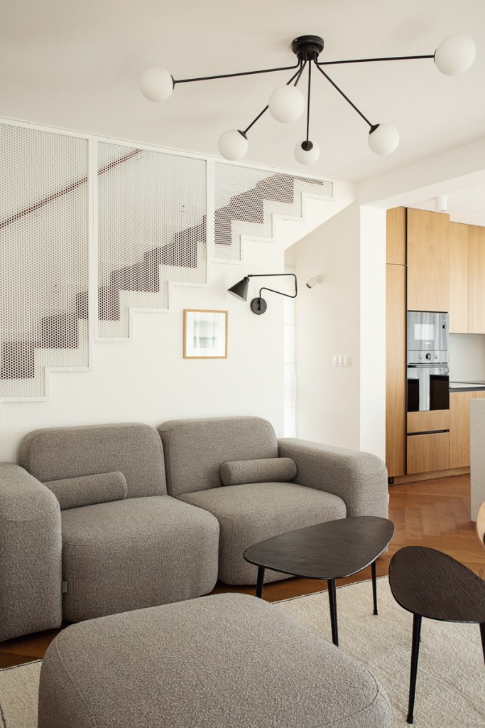 „A fost o amenajare care a nu a pus mari probleme. Balustrada de la scara interioară ne-a dat ceva bătăi de cap. A trecut prin mai multe variante și iterații până am decis asupra soluției implementate, pentru că socoteala de acasă nu se potrivea cu cea din teren. Am vrut neapărat să folosim tablă perforată metalică și a fost dificil să realizăm o balustradă care să urmeze linia treptelor, să fie cât mai «slim», dar rezistentă și să gândim prinderile în așa fel încât să fie cât mai puțin vizibile. Dar am avut noroc de un colaborator pe metal răbdător și priceput”, spune Andreea.