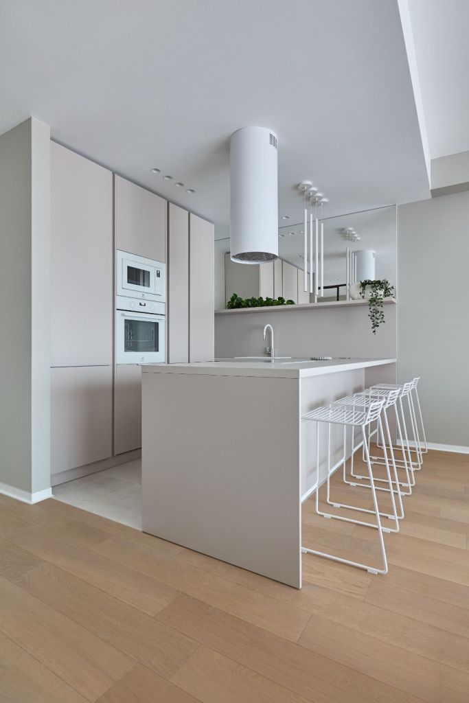 Tonuri neutre, plante verzi contrastante, oglinzi impunătoare, scaune sculpturale și multă lumină naturală, așa putem descrie apartamentul amenajat de echipa de arhitecți și designeri Dofinteriors, gândit și personalizat pentru închiriere.