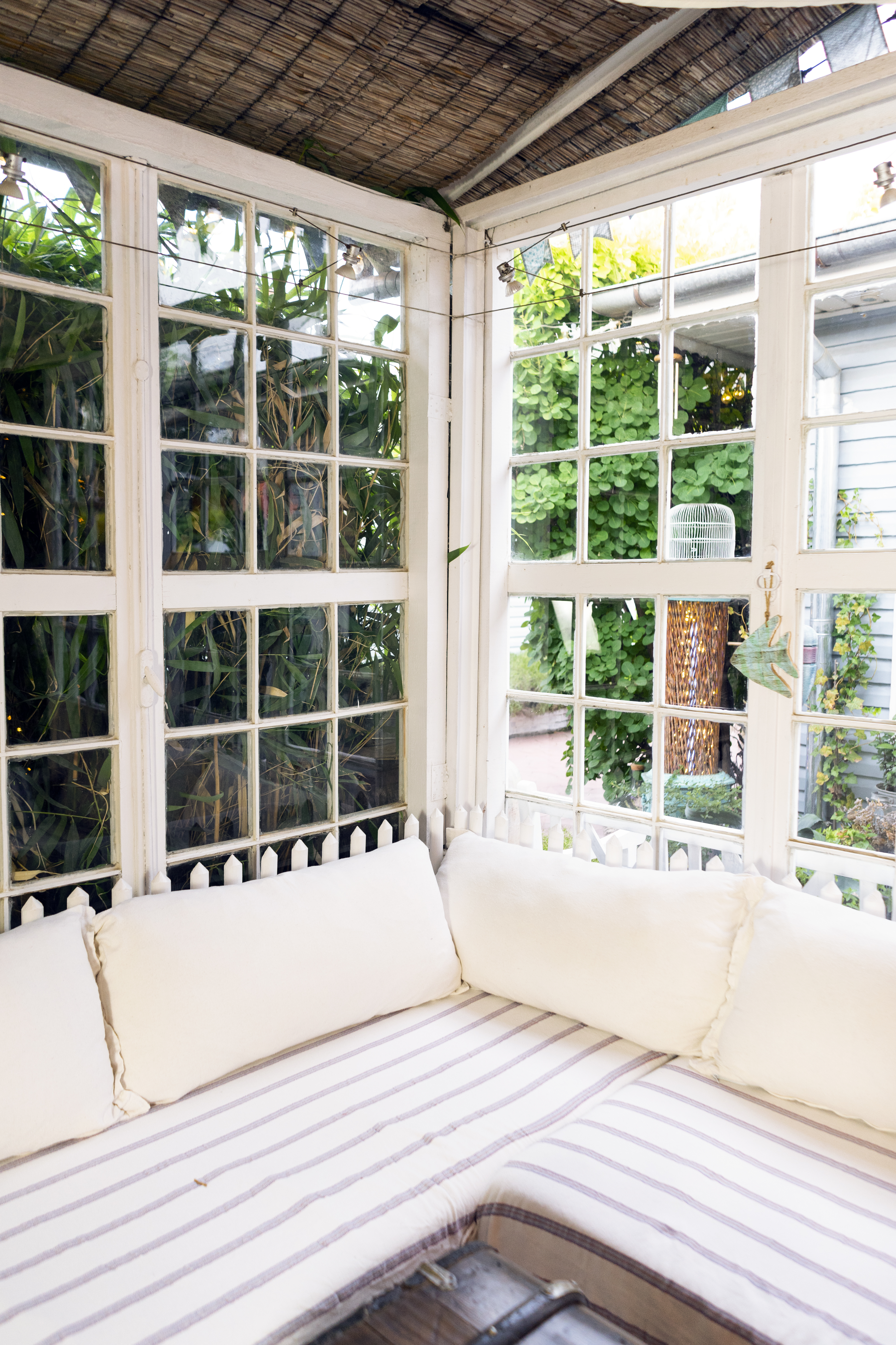 Spectaculosul spațiului vine tocmai din combinația dintre piese recondiționate, mobilă de designer și obiecte mass market. Același loc găzduiește abajururi Le Klint, un brand danez de tradiție, table ruginite, o canapea IKEA sau o masă Tripp Trapp Denmark, un alt brand din rândul celor de înaltă clasă.