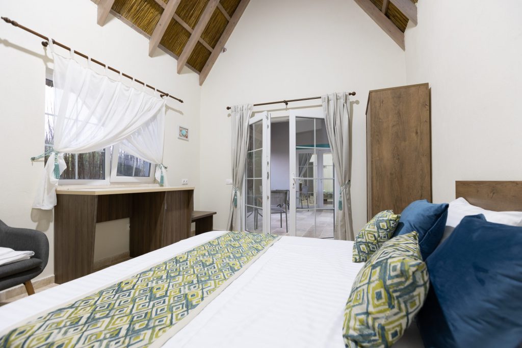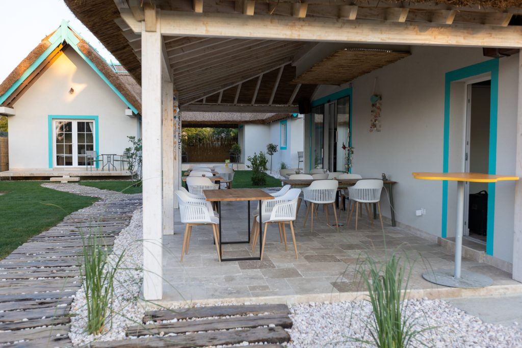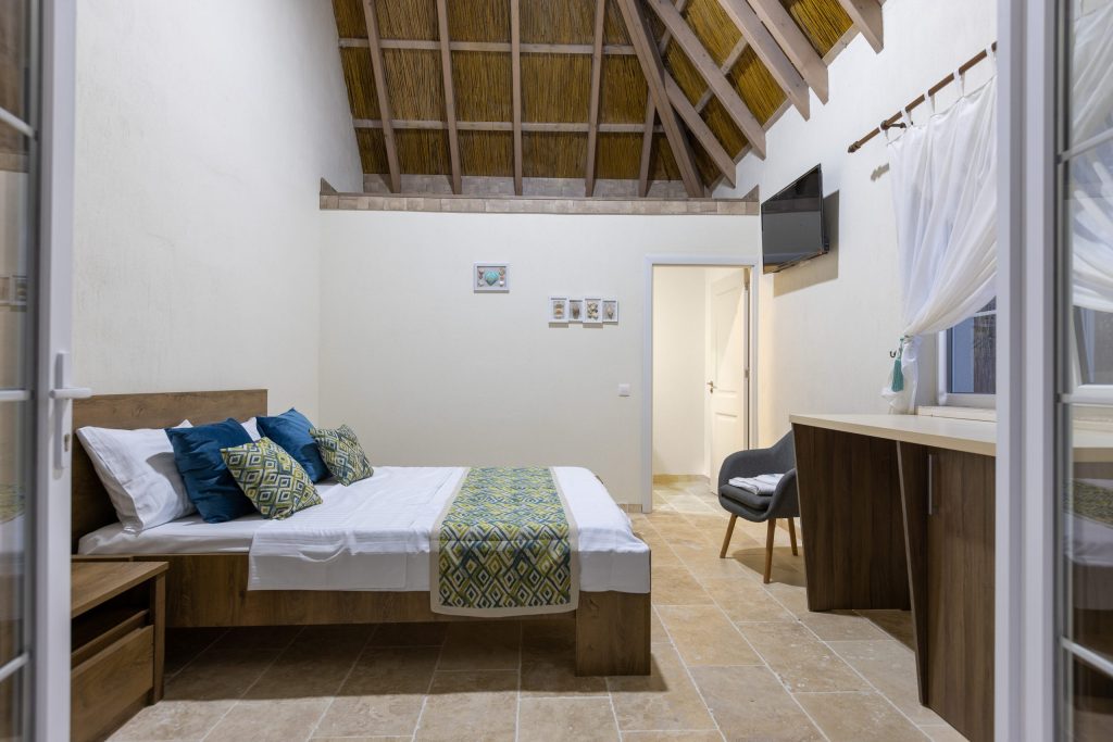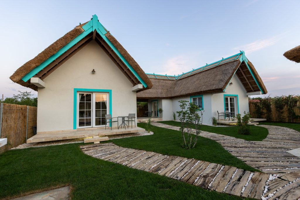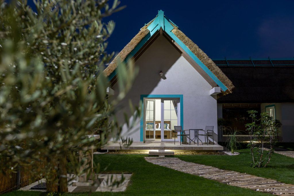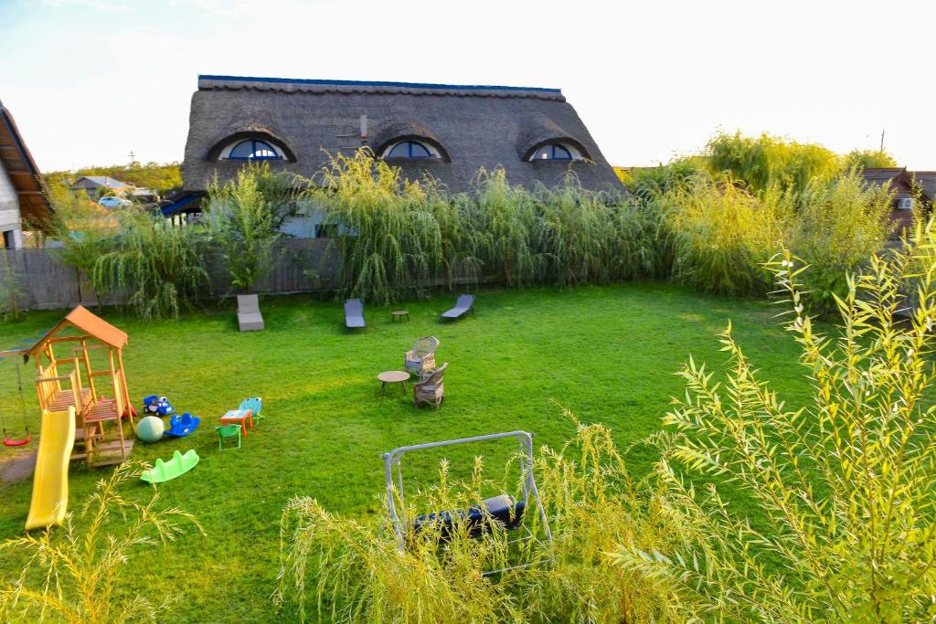Cu o capacitate de până la 15 persoane, pensiunea oferă două camere de trei persoane, două camere de două persoane și un apartament cu două camere, în căsuțe cu acoperiș din stuf și un design tipic zonei dobrogene.