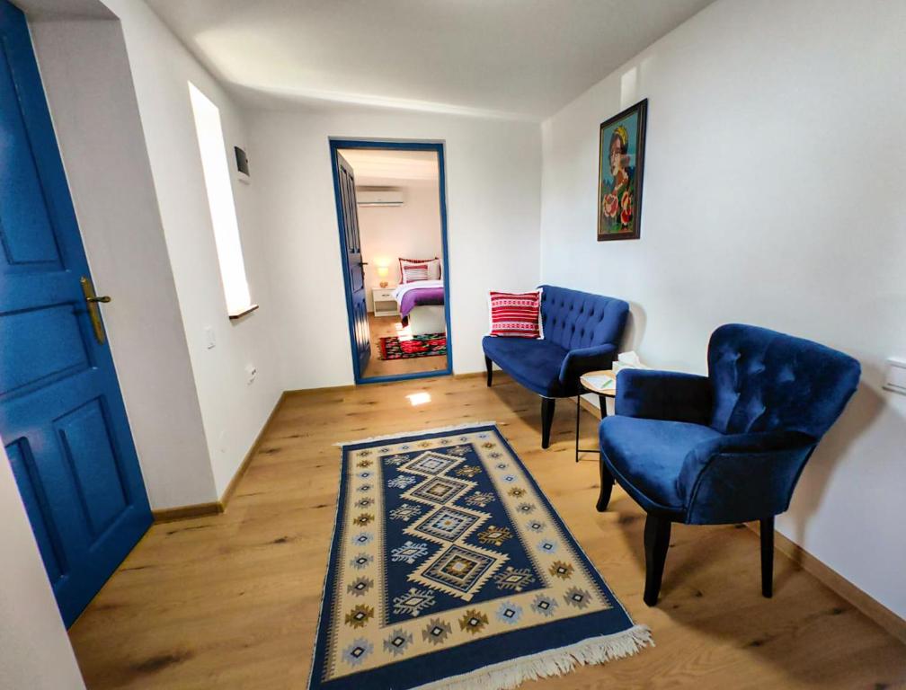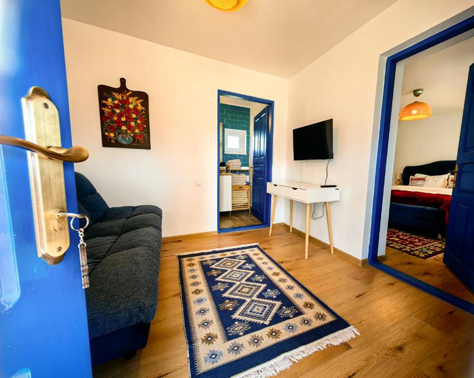 Renovată în așa fel încât să-și păstreze autenticitatea, căsuța arată ca-n poveștile dobrogene, cu fațada albă și lemnăria vopsită în albastru intens. Astăzi, îți propune spre închiriat două apartamente cu design tradițional, numite Razelm și Golovița. O cazare în care te poți bucura de liniște și priveliștea către grădina cu flori, dar și de curtea vastă cu vișin din fața casei.