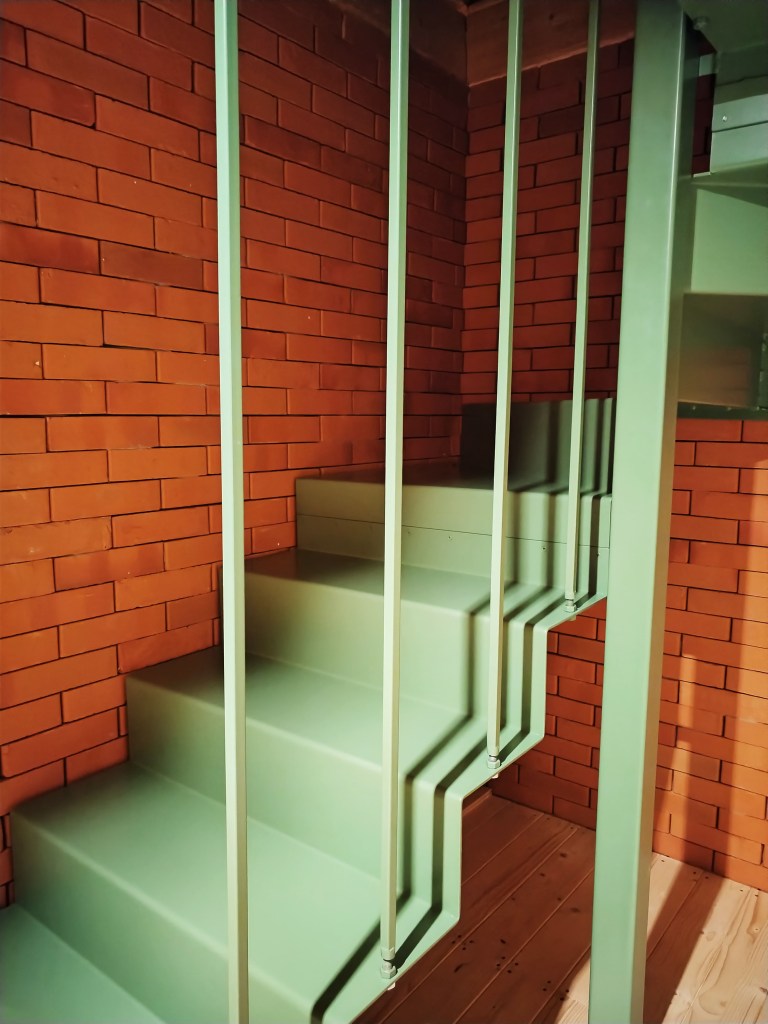 Locuința celor doi arhitecți este o reinterpretare a casei tradiționale maramureșene. Ca și în cazul atelierului, Octavia și Lucian și-au luat inspirația din trecut. Au actualizat însă lucrurile, din punct de vedere al designului și al funcționalității. Dacă privești din exterior, casa pare o construcție veche, însă interiorul este un mix original de stiluri și texturi. Cel mai interesant aspect, ca structură a casei, este compartimentarea open space a parterului. Probabil că aici este diferența majoră, dacă facem comparația cu o casă tradițională. Mai sunt și cele cinci ferestre foarte înalte, cu tocărie din lemn de rășinoase, prelucrat în Bucovina. Deși mai este încă mult de lucru la amenajare, ferestrele vopsite în verde tradițional sunt, de departe, elementele care conturează cel mai bine spațiul.