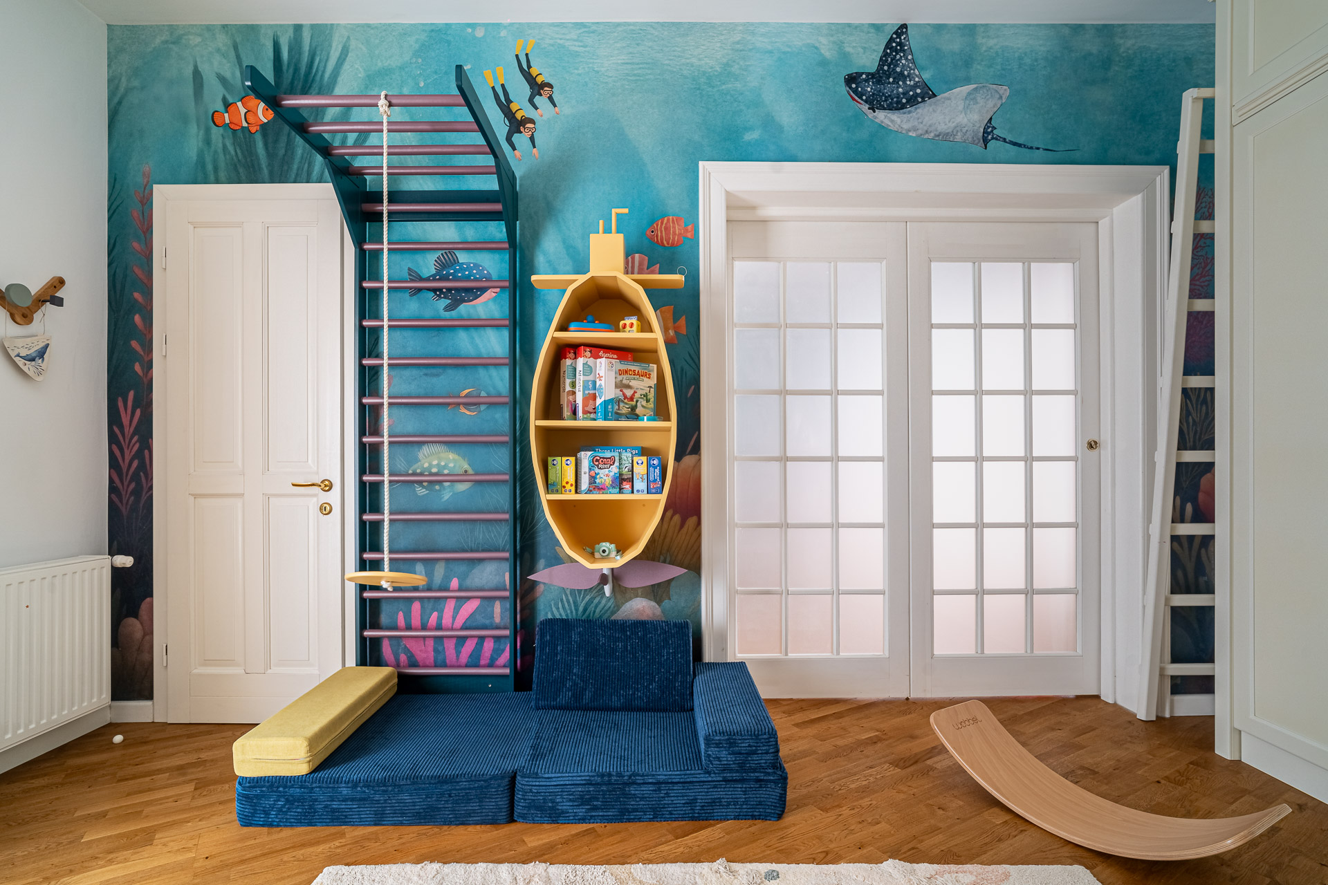Ca estetică, Dana a ales tematica ”Under the sea”, pentru care a folosit tapet personalizat și decorațiuni cu motive marine. Mobilierul pe comandă (pat, birou, spalier, etajera submarin) l-a făcut Lura Atelier.