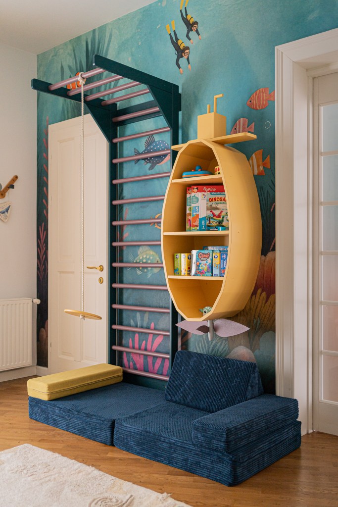 Ca estetică, Dana a ales tematica ”Under the sea”, pentru care a folosit tapet personalizat și decorațiuni cu motive marine. Mobilierul pe comandă (pat, birou, spalier, etajera submarin) l-a făcut Lura Atelier.