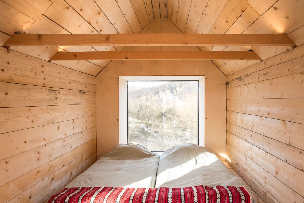 MuMA Hut: un eco tiny house de 16 metri pătrați ridicat între dealuri, de unde te uiți în livadă și vezi zimbri