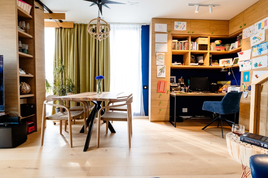 „Este o locuință în care râsetele răsună, poveștile prind viață, iar fiecare colț ascunde o comoară ce așteaptă să fie descoperită. Un adevărat Cuib al Exploratorilor”, spune Cristina. „Cred că adevărata magie a venit de la cel mai tânăr și entuziast colaborator și proprietar, Eric. Creativitatea lui spontană, desenele lipite de mobilier, schițele presărate ici și colo – a dat locuinței și mai multă viață. Sinceră să fiu, asta e partea mea preferată a acestui proiect. Cred cu adevărat că nu există o decorațiune mai specială într-o locuință decât arta propriului copil, autentică, vie, plină de suflet și libertate”.
