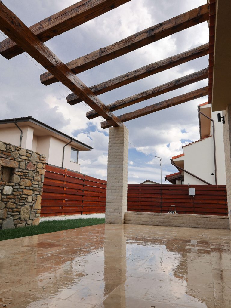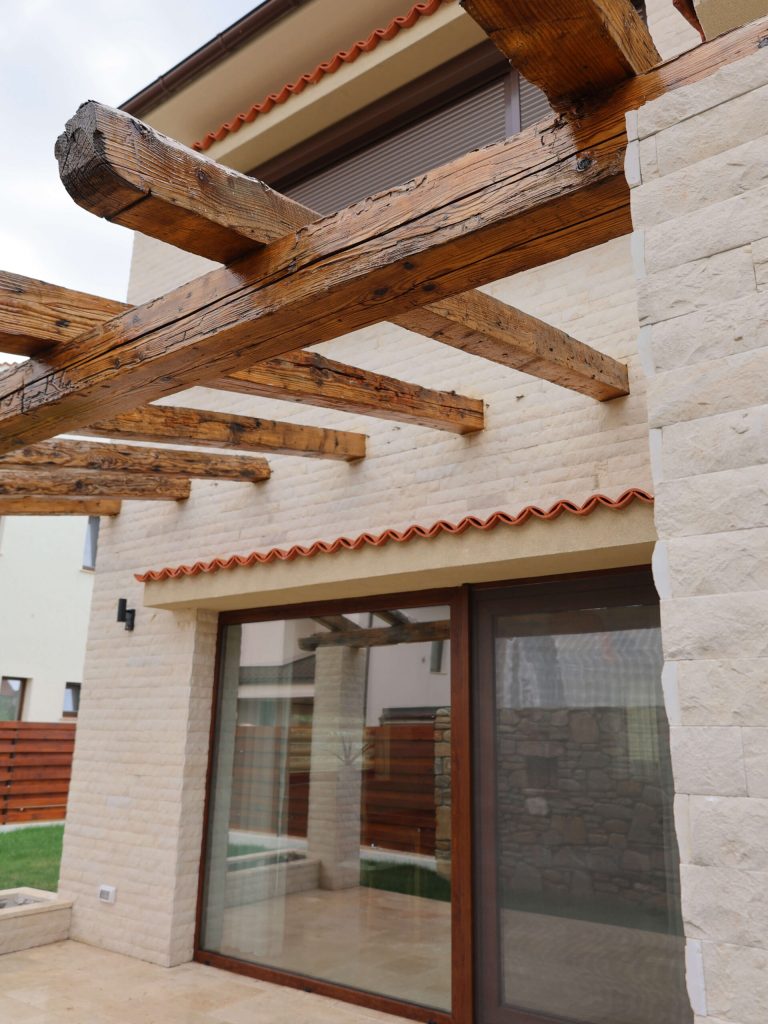 Ioana și soțul ei iubesc curățenia, simplitatea și obiectele care nu încarcă vizual, drept urmare au optat ca întreaga amenajare să se învârtă într-o paletă cromatică cu mult alb, culori deschise – nuanțe de bej și gri deschis – dar și multe accente în nuanțe derivate ale maroului. Pe cele din urmă le-au ales și pentru că, pe jos, în majoritatea încăperilor din casă au un travertin de la Piatra Design. În plus, șemineul este construit din piatră și au dorit să păstreze puțin stilul și starea pe care acesta o transmite.