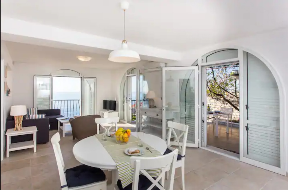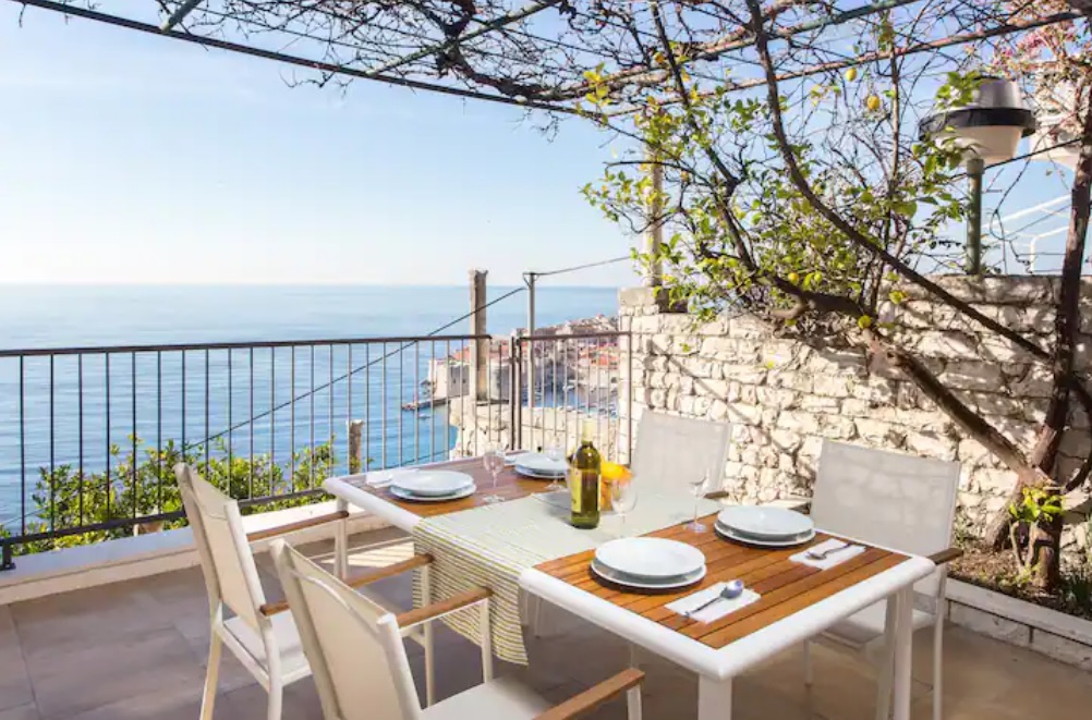 Da, nu folosim cuvinte mari când spunem divină, căci terasa acestui apartament în casă veche pare o pictură impresionistă. Situat la 12 minute de mers pe jos de orașul vechi, acesta oferă o vedere splendidă la Marea Adriatică, grație terasei generoase. Locația dispune de bucătărie complet utilată, interior spațios și luminos, o cameră cu baie privată, o baie suplimentară și un living cu o canapea care se poate transforma în pat, astfel încât aici se pot caza maximum patru persoane.