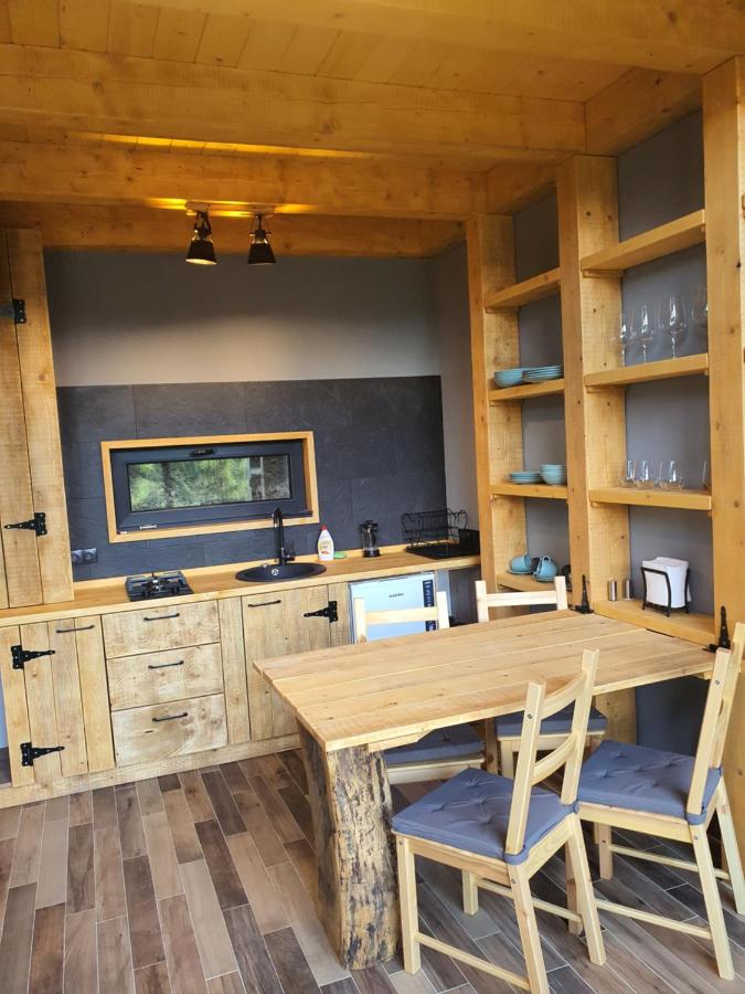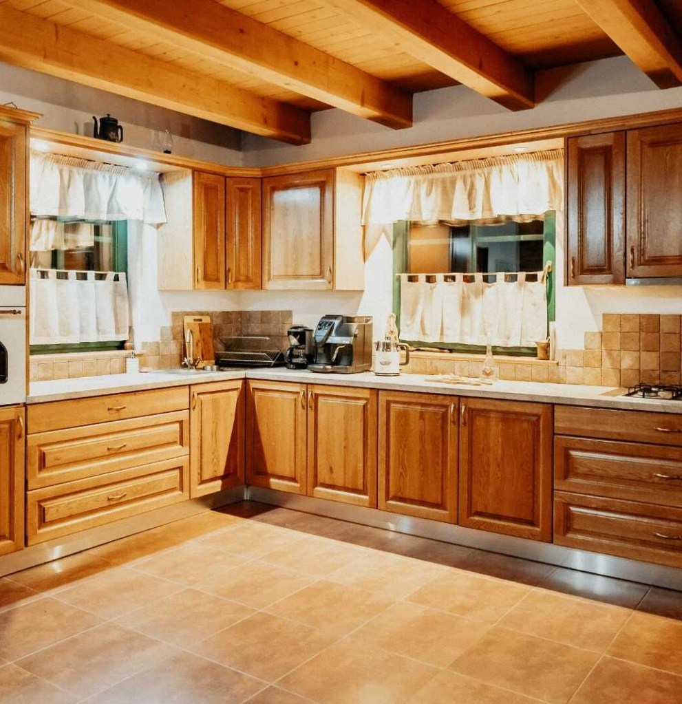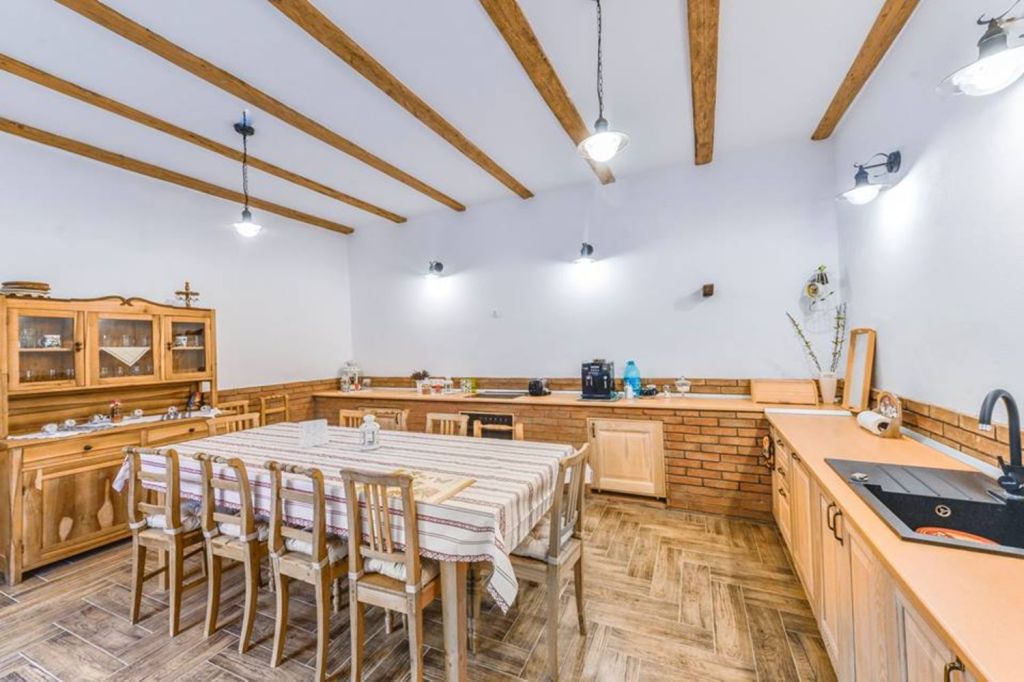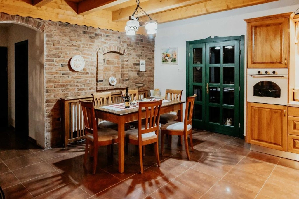 Zona comună este foarte spațioasă, cu tavan înalt și ferestre mari, care aduc natura mai aproape de tine. Lemnul este prezent în toate încăperile, atât în construcție și finisaje, cât și în micile elemente decorative. Curtea generoasă și frumos amenajată este locul de unde poți admira peisajul natural și unde te poți relaxa cu un grătar sau la un pahar de vin, lângă foc.