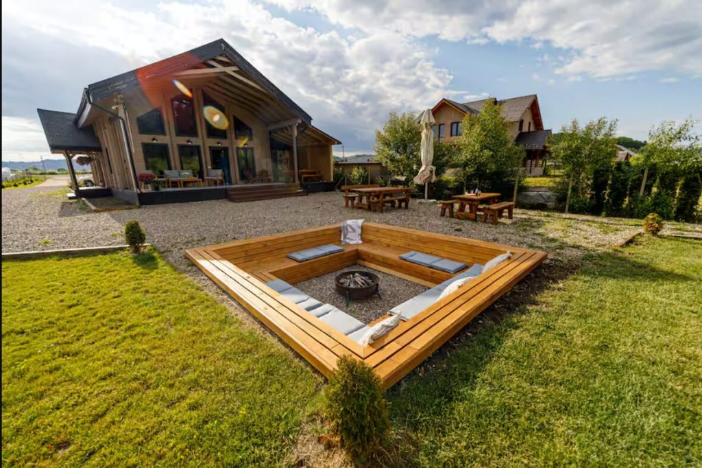 Cabana premium din Întorsura Buzăului, județul Covasna, are o arhitectură diferită. Cabana Aztec este situată în mijlocul naturii, aproape de pădure, și oferă o priveliște de poveste cu care să-ți bei cafeaua, de pe terasa generoasă. Casa are o capacitate maximă de zece persoane și este amenajată în armonie cu legile feng shui. Există două dormitoare cu două paturi duble și o mansardă cu șase locuri, iar bucătăria este complet utilată.