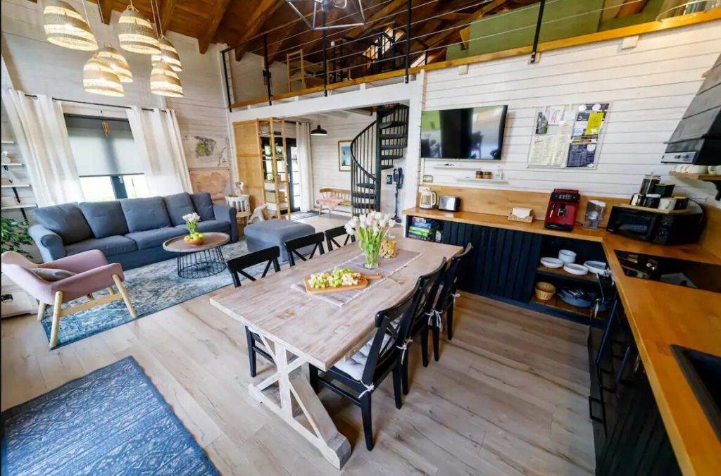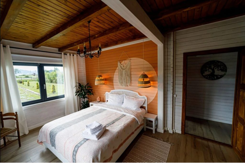 Situată în comuna Moacșa din Județul Covasna, această casă a fost construită în 2018, inițial ca o locuință de vacanță de familie. Cazarea are două camere la etaj și o terasă cu vedere la lac, iar la parter se află un living, o baie și o bucătărie deschisă. Afară are o zonă de relaxare cu grătar, o grădină mare și un igloo. Proprietarii au hotărât să nu includă un televizor în cabană, ca oaspeții lor să se conecteze real cu ei și cu natura încântătoare, mai exact pădurea de mesteacăn de pe malul lacului Moacșa.
