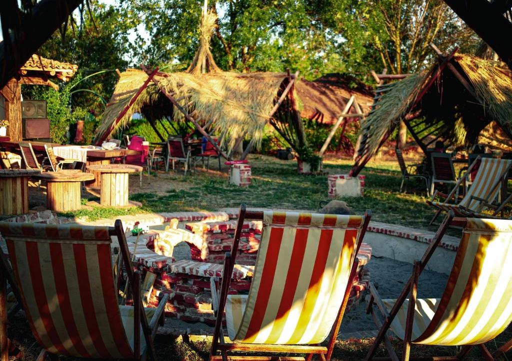 Satul arhaic dispune de 13 spații de cazare, două restaurante, dintre care unul pescăresc și unul tradițional românesc, un iaz de scăldat și un loc de relaxare pentru oaspeți/vatră.