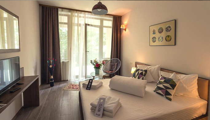 Toate camerele și apartamentele din hotel sunt decorate elegant și echipate cu bucătărie, Smart TV și balcoane generoase, iar prețurile au și un mic dejun generos inclus.