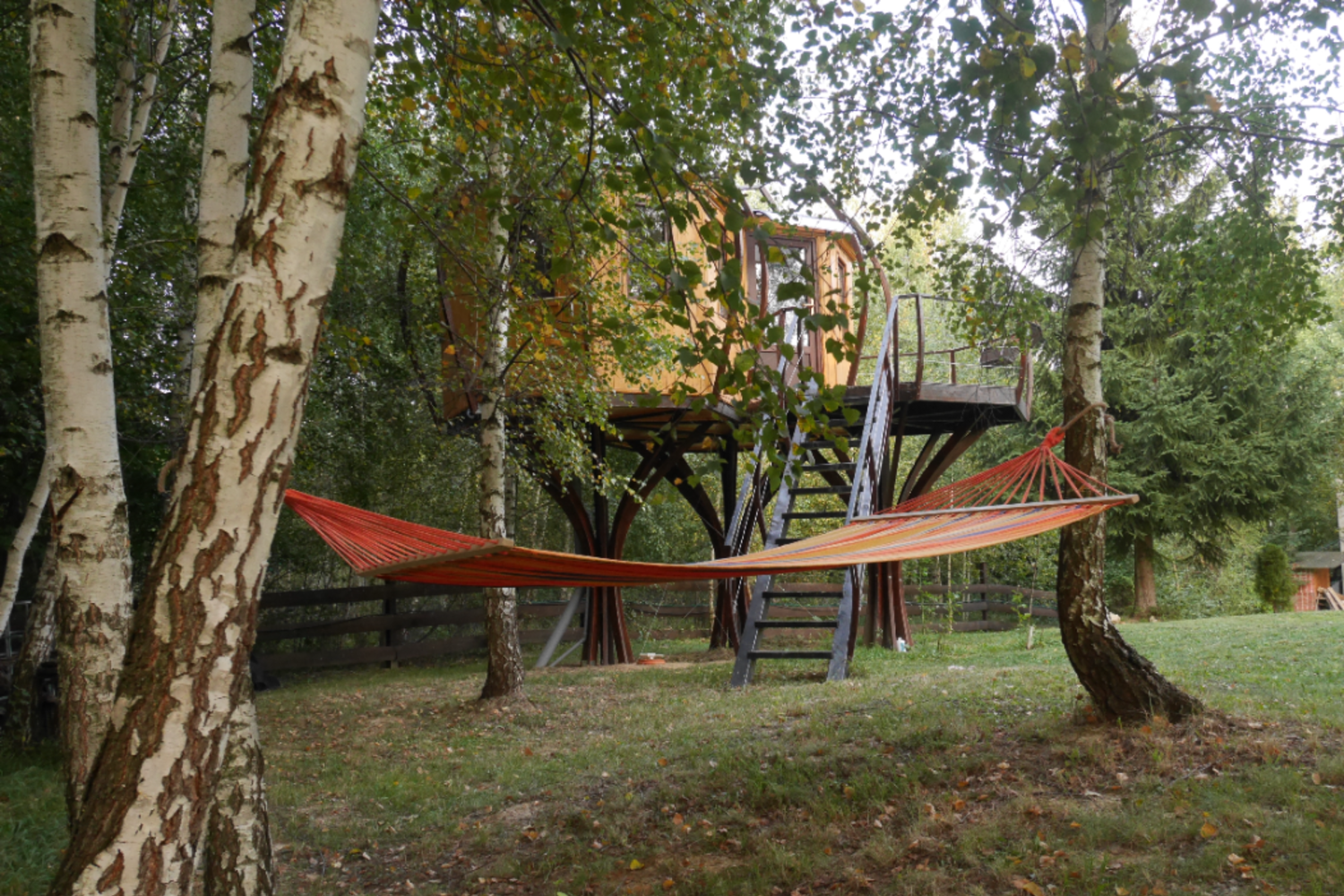 O familie de IT-iști și-a construit în 2017 o căsuță în copac, la 6 kilometri de Râșnov, din dorința de a avea un loc în care să se retragă în afara orașului. Între timp, casa din copac a primit rolul de guest-house, după ce a fost îmbunătățită cu utilitățile de bază. Pe scurt, în căsuță te așteaptă un living/dormitor, o baie și o toaletă, iar în curtea de 1.000 metri pătrați poți face grătar și lua masa într-un spațiu special amenajat.