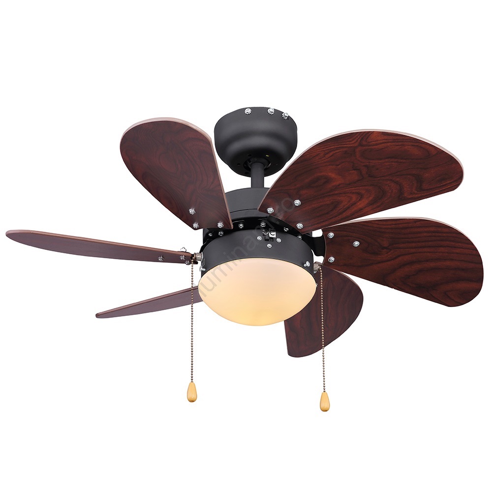 Ventilatorul de tavan Globo are control pe lanț. Este destinat pentru încăperi de 12 metri pătrați, are trei trepte de viteză și funcțiile de vară și de iarnă. Adică răcorește vara, iar iarna recirculă aerul cald. E disponibil în mai multe set-uri de culori și se poate monta pe un tavan cu înclinare de până la 30 de grade.